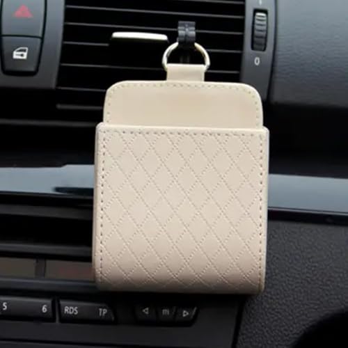Generic - منظم فتحات التهوية في السيارة، جراب داخلي خلفي لمقعد السيارة مزود بخطاف، صندوق تخزين بمخرج للتعليق، للموبايل الذكي، النظارات، الاقلام، العملات المعدنية ( بيج - قطعة واحدة -)من رنا ستور
