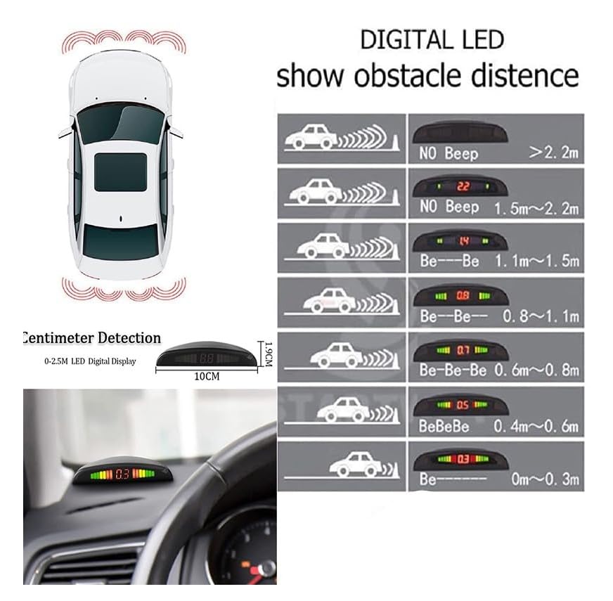 - ✅ [مستشعر سيارة احتياطي عالي الجودة] حساس ركنة وقف السيارات عبارة عن مجموعة مستشعرات لاسلكي لركن السيارات بسهولة. مصمم بـ 4 مستشعرات بالموجات فوق الصوتية وصندوق تحكم مركزي وشاشة ال اي دي لاسلكية مع صوت صفير للتنبيه. لا حاجة إلى أسلاك بين شاشة ال اي دي وصندوق التحكم المركزي، ويتميز بتصميم مريح للغاية بالنسبة لك لوضع الشاشة على الجزء الأمامي من السيارة.