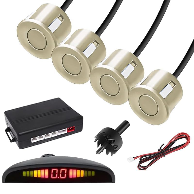 Generic - سنسور بارك سيارة، حساس ركنة لاسلكي لوقوف السيارات، حساس للرجوع للخلف مع 4 مستشعر احتياطي، شاشة ال اي دي لاسلكية مع تحذير صوتي للسيارات والشاحنات( ذهبى ، كود : 8812 )- من رنا ستور