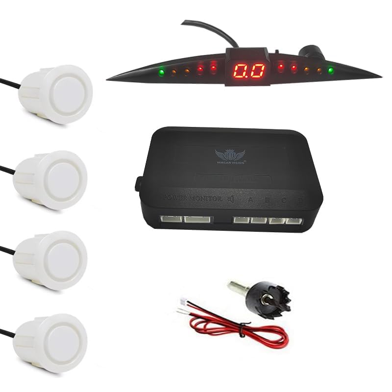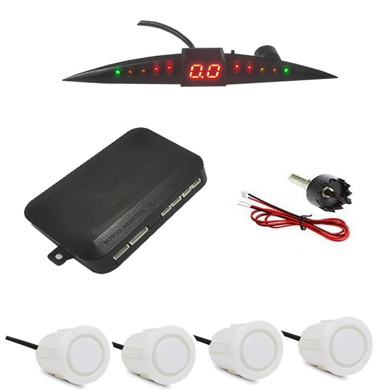 Generic - سنسور بارك سيارة، حساس ركنة لاسلكي لوقوف السيارات، حساس للرجوع للخلف مع 4 مستشعر احتياطي، شاشة ال اي دي لاسلكية مع تحذير صوتي للسيارات والشاحنات( ابيض ، قطر 22 مم ، كود : 9381)- من رنا ستور