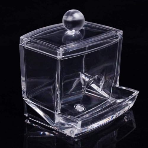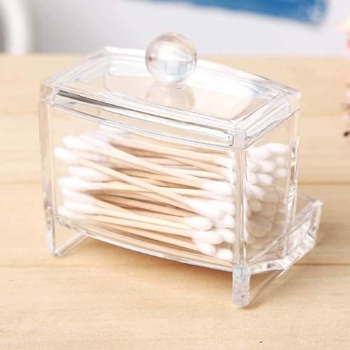 - علبة لتخزين الاعواد القطنية، ودانة بغطاء من الاكريليك شفاف ، صندوق منظم اعواد