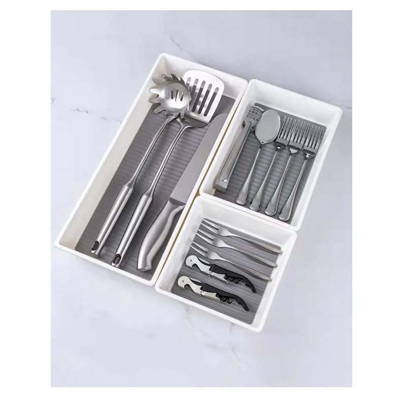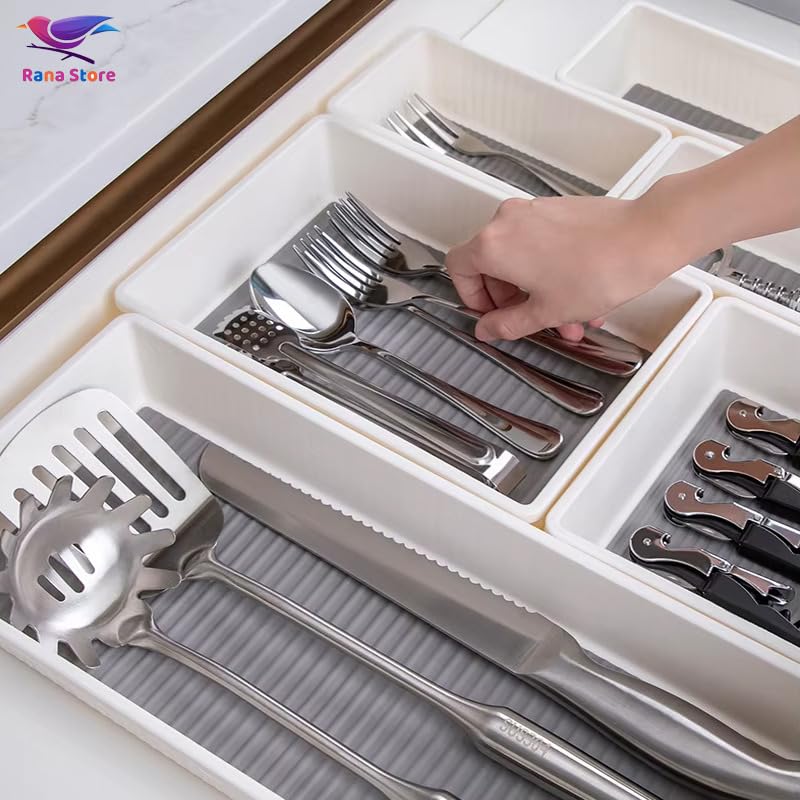 - قم بتنظيم درج مطبخك ووفر مساحة أكبر مع منظم الأدوات الفضية هذا. لتخزين المزيد من أدوات المائدة وأدوات المطبخ.