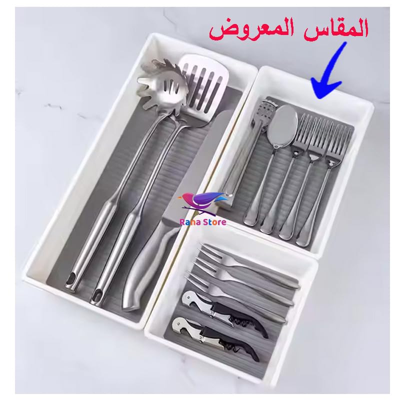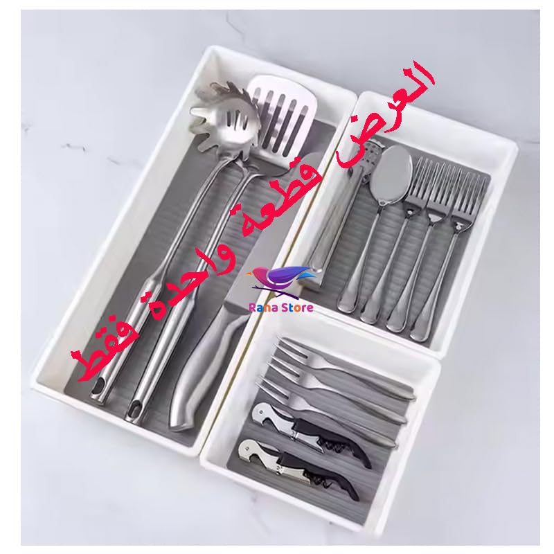 - قم بتنظيم درج مطبخك ووفر مساحة أكبر مع منظم الأدوات الفضية هذا. لتخزين المزيد من أدوات المائدة وأدوات المطبخ.