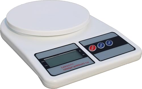 - ميزان مطبخ رقمي الكتروني محمول متعدد الاغراض ، جهاز وزن مع شاشة LCD باضاءة خلفية ، ابيض ، 10 كجم - من رنا ستور