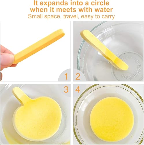 - مضغوطة وسهلة الحمل: تتوفر إسفنجة غسيل الوجه بشكل عصا مضغوطة لسهولة التخزين، حيث تتمدد كل إسفنجة إلى قُطر 3.15 بوصة (8 سم) عند تشبعها وتُفتح في الماء لتكون دائرية. يرجى نقعها في الماء لعدة مرات لتتمدد بالكامل قبل الاستخدام.