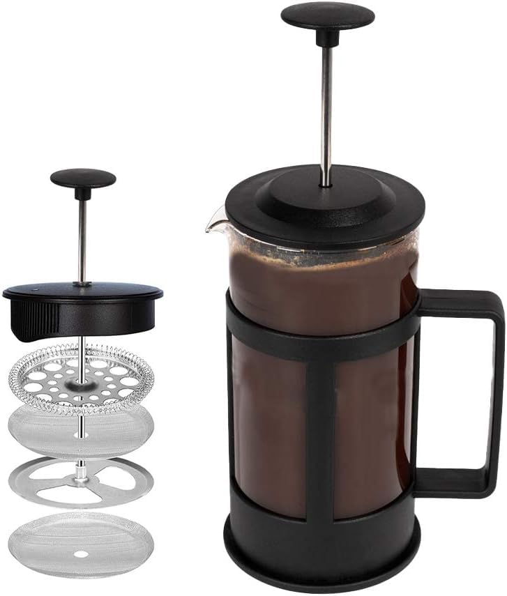 Generic - ماكينة تحضير القهوة والشاي الفرنسية ، تحضير القهوة بزجاج بوروسيليكات، فلتر ستانلس ستيل، متينة ومقاومة للحرارة، لون اسود (350 مل ) من رنا ستور