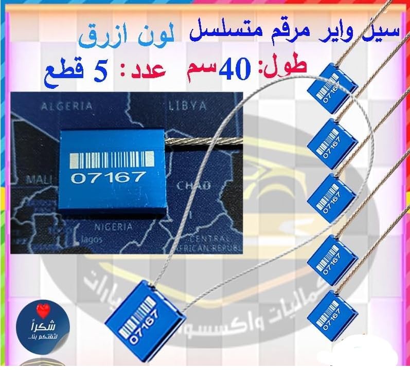 Generic - اربطة امان واير معدن شديدة التحمل مرقمة ، سيل متسلسل ، للشاحنات والمقطورات والحقائب والصناديق وغيرها (سيل واير معدن لون ازرق ، طول 40 سم ، عدد 5 قطع ) ) - من رنا ستور