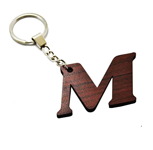 Generic - سلسلة مفاتيح للسيارة والمنزل والمكتب وغير ذلك بتصميم خشبي مقطوع بالليزر مع دلاية على شكل (حرفM) - من رنا ستور، بني