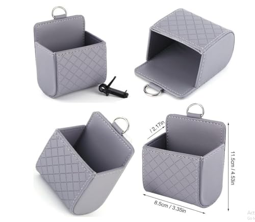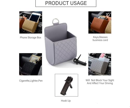 Generic - شنطة تخزين جلد منظمة للتعليق بخطاف في فتحة تهوية السيارة تستخدم كحامل موبايل وجيب لتعليق النظارة الشمسية والمفاتيح والعملات المعدنية والبطاقات-- ( رمادي - قطعة واحدة )) --من رنا ستور