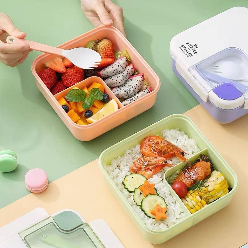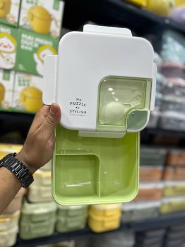 Generic - لانش بوكس من البلاستيك النقي مع فتحات تخزين آمنة للاستخدام ومانعة للتسرب مع ملعقة قابلة لإعادة الاستخدام من رنا ستور، لون أخضر، قطعة واحدة