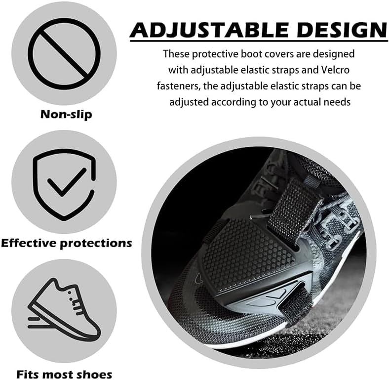 - ✅ يحمي الأحذية من احتكاك ناقل الحركة - يمنع علامات الاحتكاك والبقع والأضرار الناجمة عن تغيير تروس الدراجات النارية، مما يحافظ على حذائك يبدو جديدًا ويحافظ على عمره.