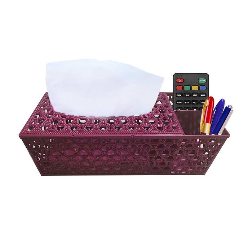 Generic - علبة مناديل بلاستيك متعددة الاستخدامات ، مع حامل ريموت ومتعلقات واقلام وغيرها - لون نبيتي- من رنا ستور