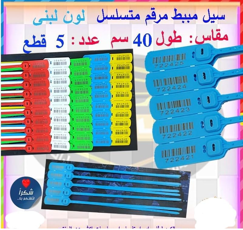 Generic - اربطة امان بلاستيكية شديدة التحمل مرقمة ، سيل مبطط متسلسل ، للشاحنات والمقطورات والحقائب والصناديق وغيرها (لون لبنى ، طول 40 سم ، عدد 5 قطع ) )))9 من رنا ستور