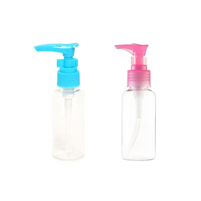 Generic - زجاجه ضغط محمولة من البلاستيك لمستحضرات التجميل والمكياج وادوات الزينة(2قطعه لون ازرق و بينك مقاس 10سم)من رنا ستور