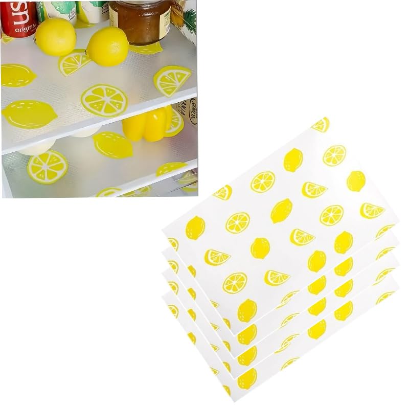 Generic - بطانات الثلاجة ، قابلة للغسل، أغطية مفارش أدوات المطبخ المنزلية، منظم اكسسوارات للفريزر العلوي والرفوف الزجاجية الأرفف السلكية وأدراج الخزانة . ( عدد 4 قطع ) من رنا ستور