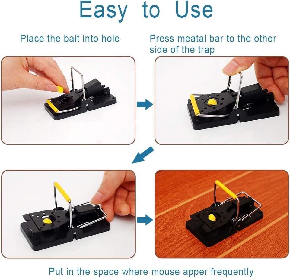 - ✅تصميم بسيط وسهل الإعدادفقط ضع الطعوم زبدة الفول السوداني في كوب الطعم الذي تم تشكيله مسبقًا، وأغلق الشريط المعدني إلى القاعدة الخلفية، ضعه بجوار الزاوية حيث يعلق الفئران في كثير من الأحيان. إذًا فقط انتظر المخلوقات حتى يتم الإمساك بها، لا داعي للقلق