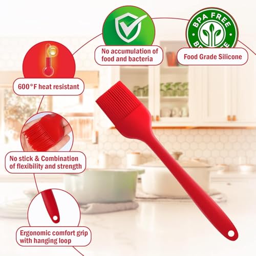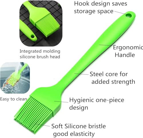 - ✅ مقاومة للحرارة: مقاومة لدرجات الحرارة يمكن استخدام مجموعة معالق السيليكون المقاومة للحرارة في الميكروويف والفرن والشواية وغيرها من أدوات الطبخ في المطبخ، ولن يبهت لونها ولا طعم لها. شعيرات الفرشاة سميكة وقوية بما يكفي لالتقاط كمية جيدة من السائل والاحتفاظ به، مما يجعلها توفر التعب وتحقق الكفاءة.