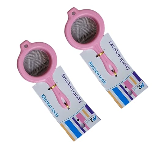 - مصفى مطبخ صغيرة من البلاستيك بتصميم رائع مع مقبض بلاستيك وسهل الاستخدام للمطبخ - 2 قطعه ، لون بينك - من رنا ستور