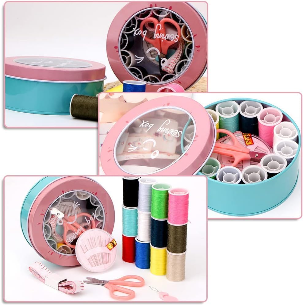 - 【التعبئة】تتضمن عبوة أدوات الخياطة علبة معدن، وشريط قياس، و16 إبرة يدوية، وخيط إبرة، ومقص، و12 خيط ملون. الأدوات كاملة بما يكفي لتلبية احتياجاتك.
