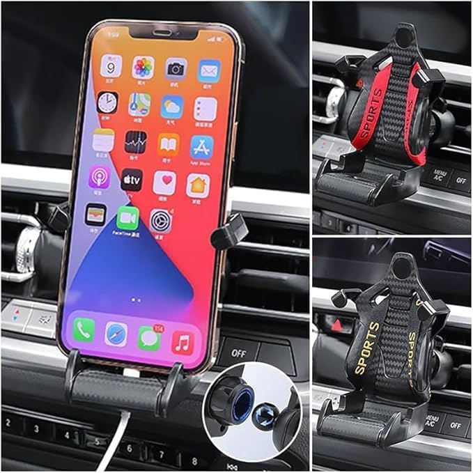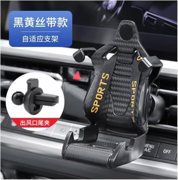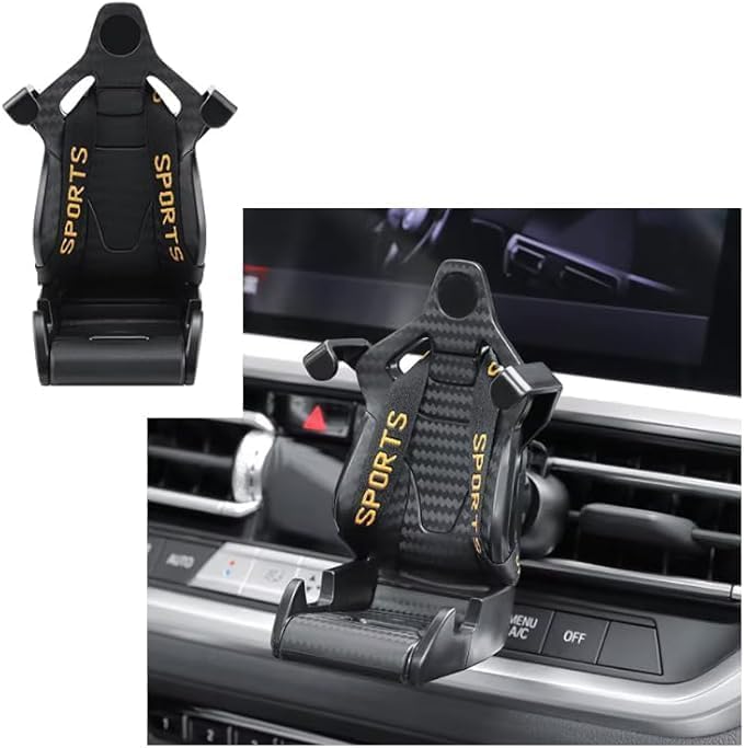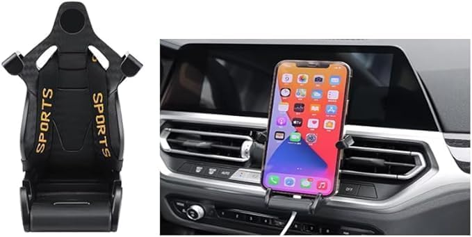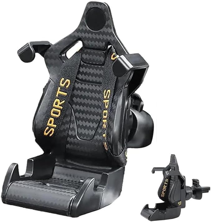 Generic - حامل هاتف للسيارة بتصميم مقعد سباق رياضي. يتميز بتصميم يشبه مقعد السيارة الرياضي مع حزام صغير لتأمين الهاتف --(اسود ، كود9848 : 9346 ) من رنا ستور
