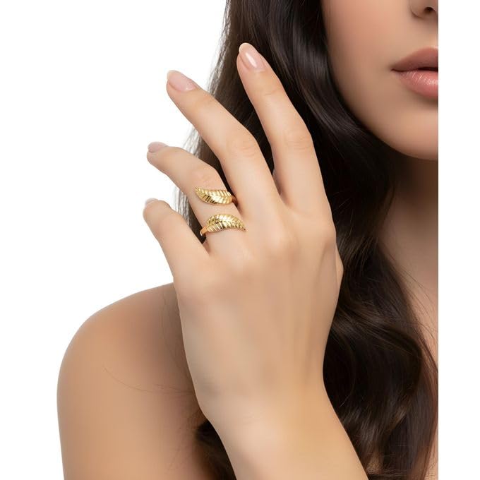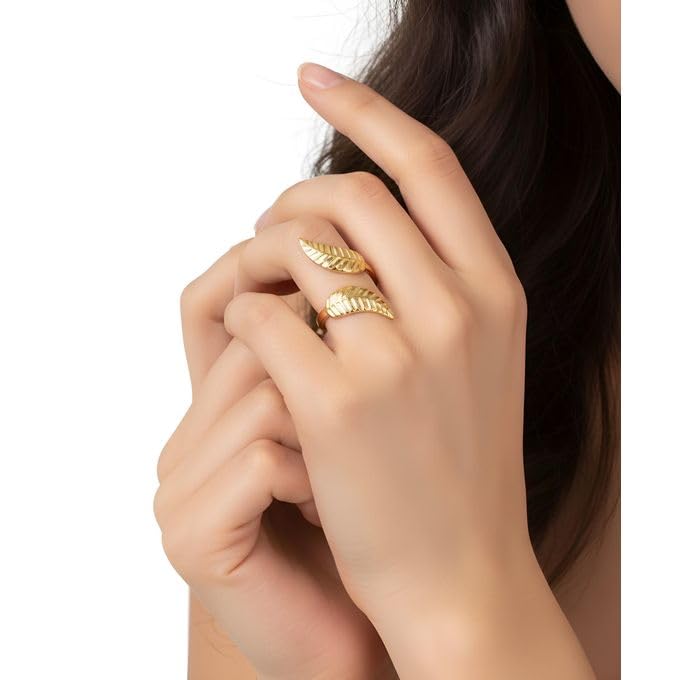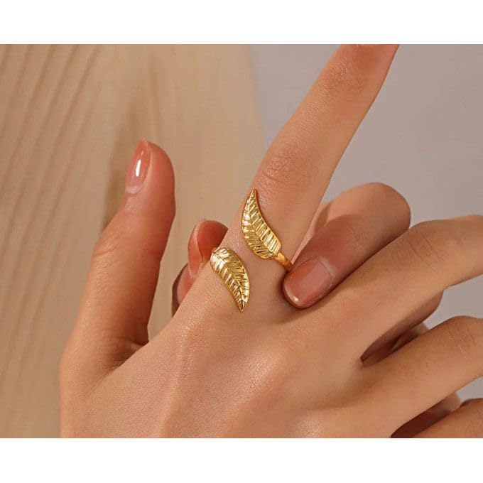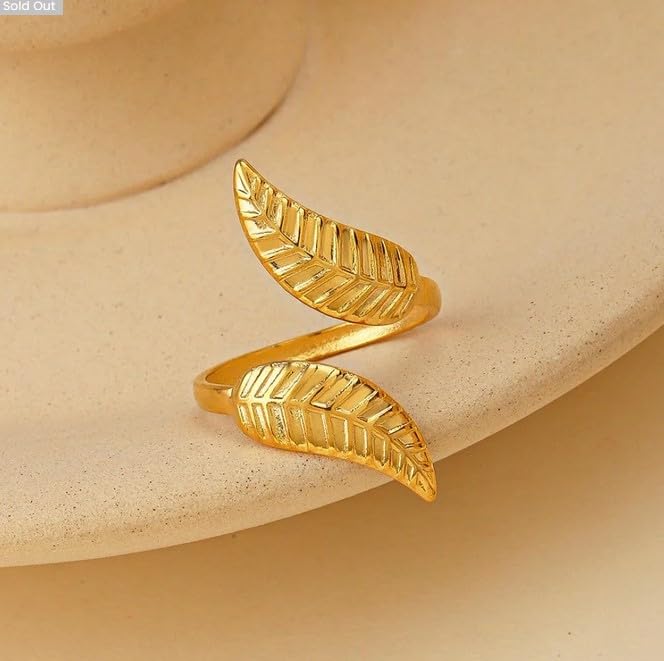 عام - خاتم استانلس ع شكل ورق شجر . ( قطعه واحده بتصميم ورقه شجر, مقاس فري سايز)--من رنا ستور