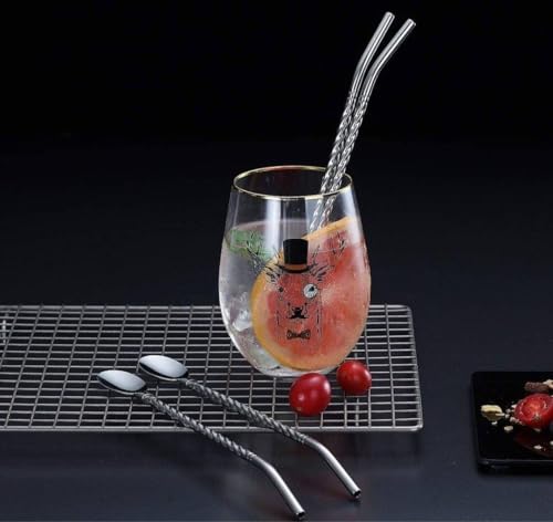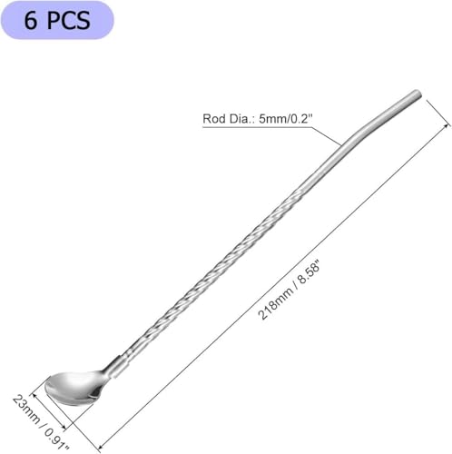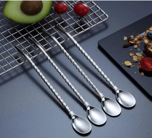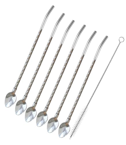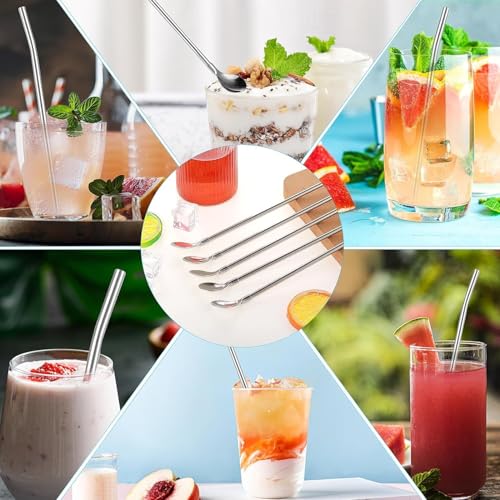 Generic - طقم شفاطات ومعالق 2 في 1، شفاطات طويلة وملعقة للفواكه والكوكتيل مع فرشاة تنظيف - مجموعة من 6 قطع مع فرشاة تنظيف من رنا ستور، ( لون فضي)