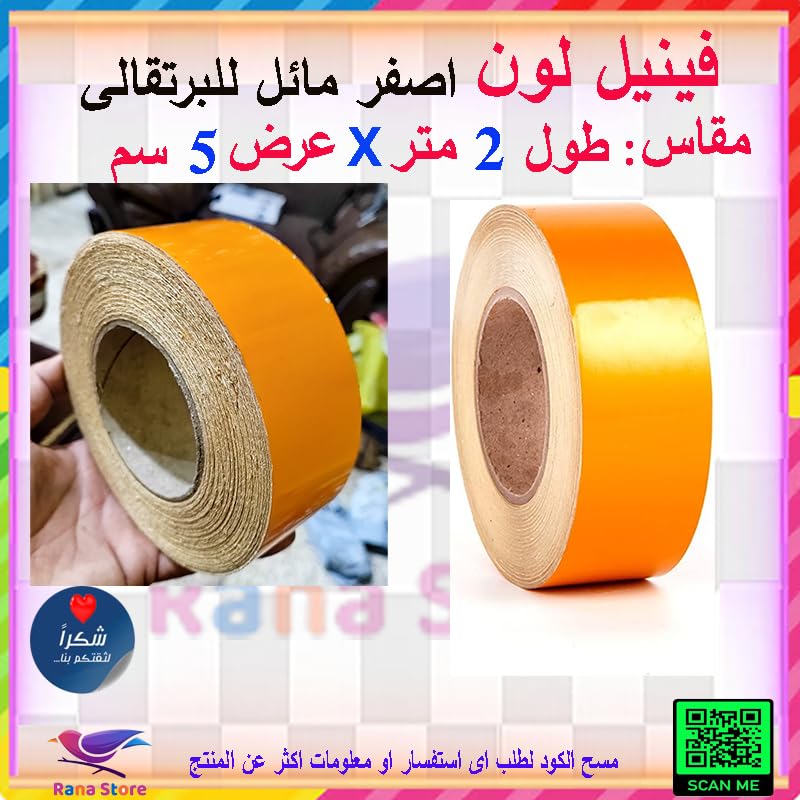 Generic - لفة ستيكر لاصق من الفينيل ، ملصقات السيارات مقاومة للماء يمكنك تركيبها بنفسك، اكسسوارات تزيين السيارات والاجهزة (- فينيل طول 2متر عرض 5سم اصفر مائل للبرتقالى)من رنا ستور