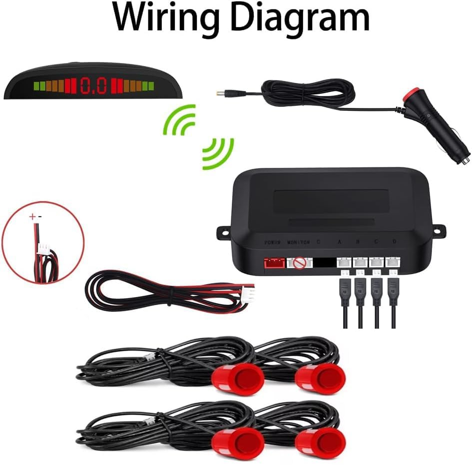Generic - حساس ركنة لاسلكي لوقوف السيارات، حساس للرجوع للخلف مع 4 مستشعر احتياطي للسيارة، شاشة ال اي دي لاسلكية للمسافات مع تحذير صوتي -( احمر ) - من رنا ستور