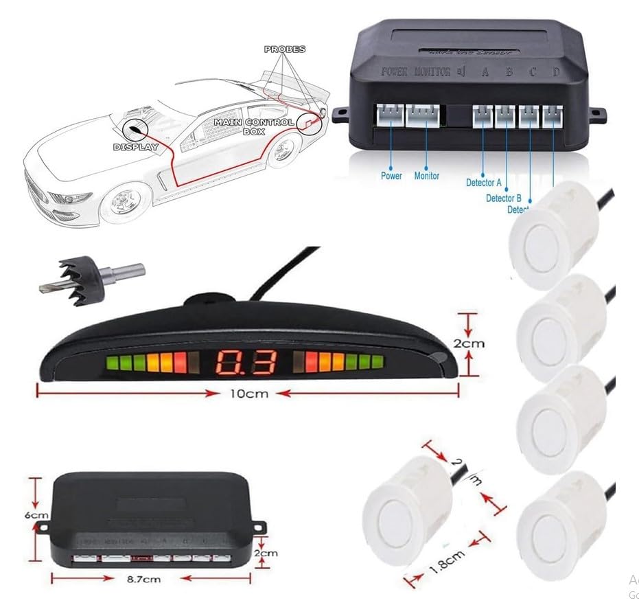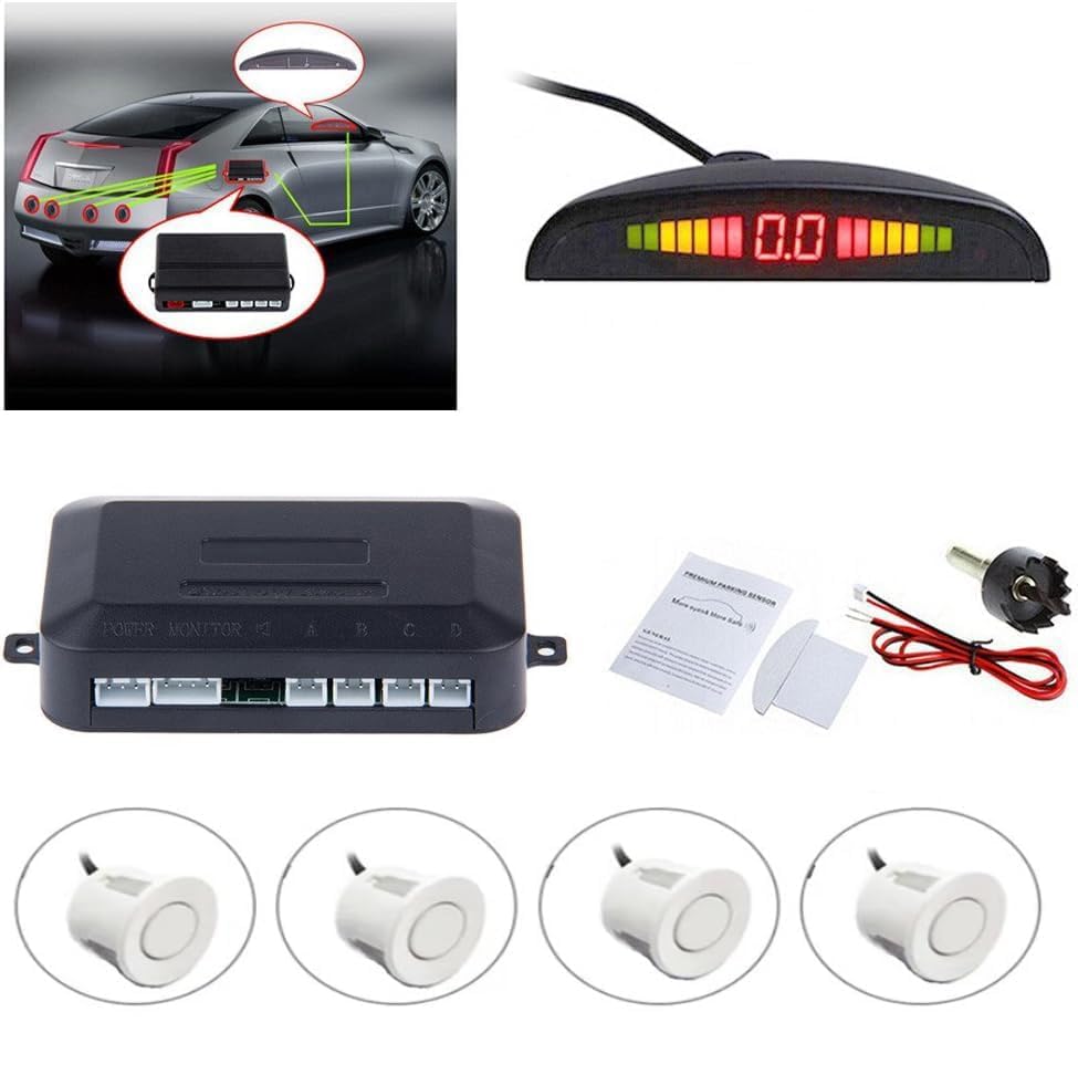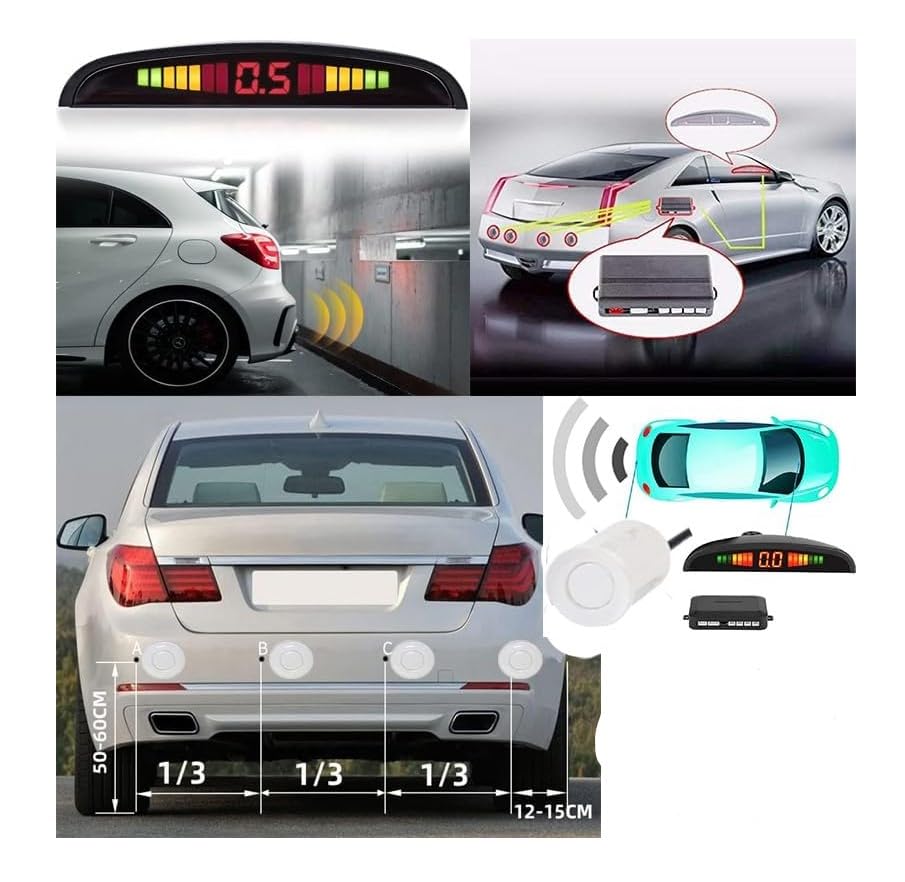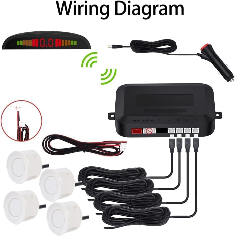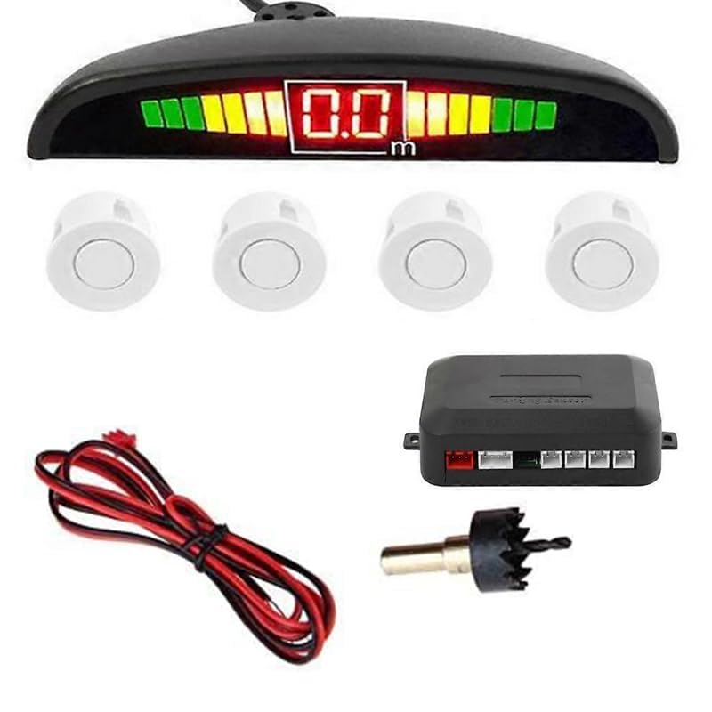 Generic - حساس ركنة لاسلكي لوقوف السيارات، حساس للرجوع للخلف مع 4 مستشعر احتياطي للسيارة، شاشة ال اي دي لاسلكية للمسافات مع تحذير صوتي -(ابيض ) - من رنا ستور