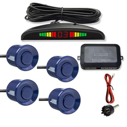 Generic - حساس ركنة لاسلكي لوقوف السيارات، حساس للرجوع للخلف مع 4 مستشعر احتياطي للسيارة، شاشة ال اي دي لاسلكية للمسافات مع تحذير صوتي للسيارات والشاحنات والمقطورة -( ازرق) - من رنا ستور