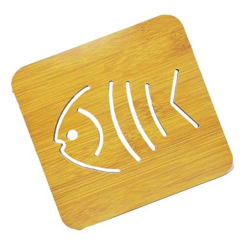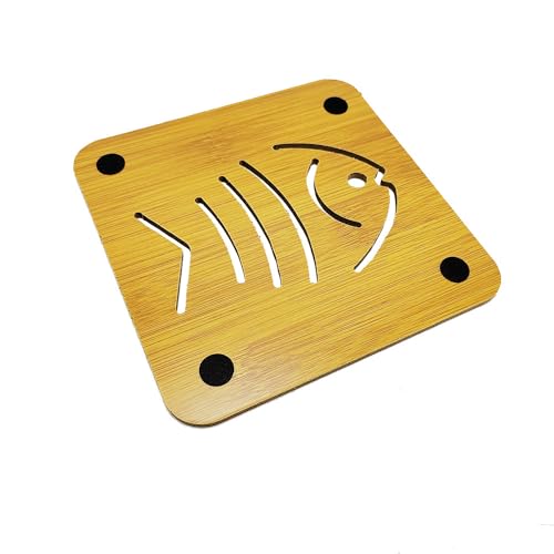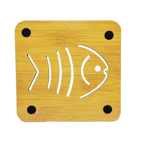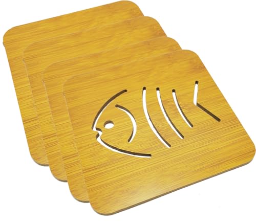 Generic - قواعد كوستر أكواب خشب مربعة بتصميم عصرى ومميز ، مع قاعدة مطاط لحماية الترابيزة ، مقاومة الحرارة، بتصميم سمكة- كود 8690، 4قطع - من رنا ستور