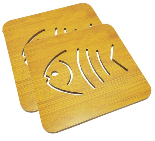 Generic - قواعد كوستر أكواب خشب مربعة بتصميم عصرى ومميز ، مع قاعدة مطاط لحماية الترابيزة ، مقاومة الحرارة، بتصميم سمكة- كود 8689، 2 قطعه - من رنا ستور