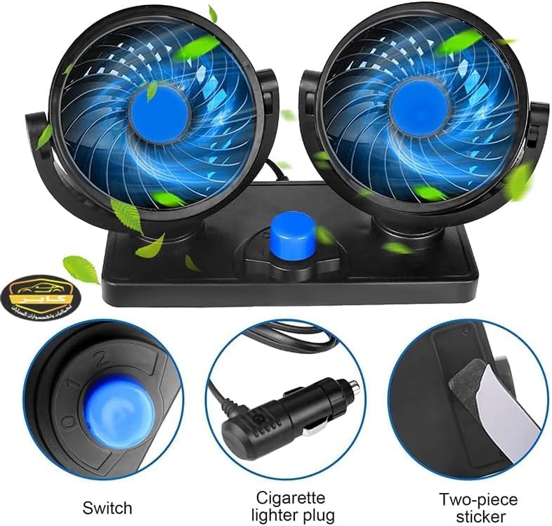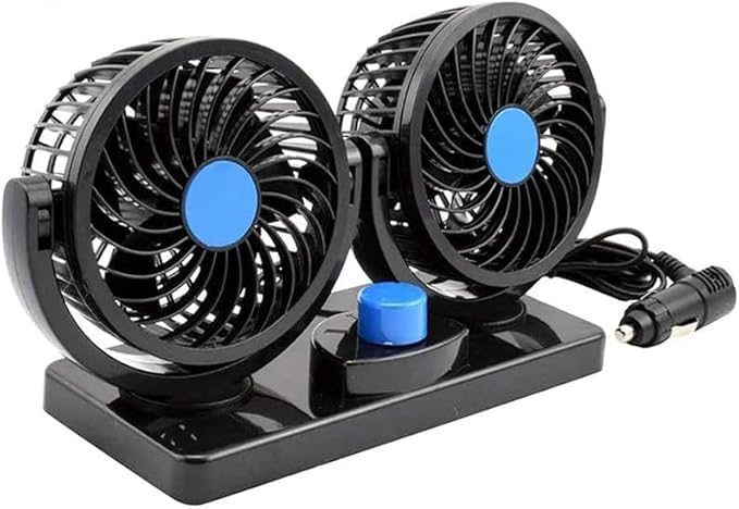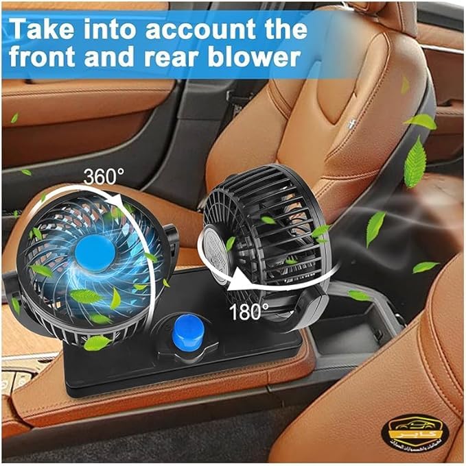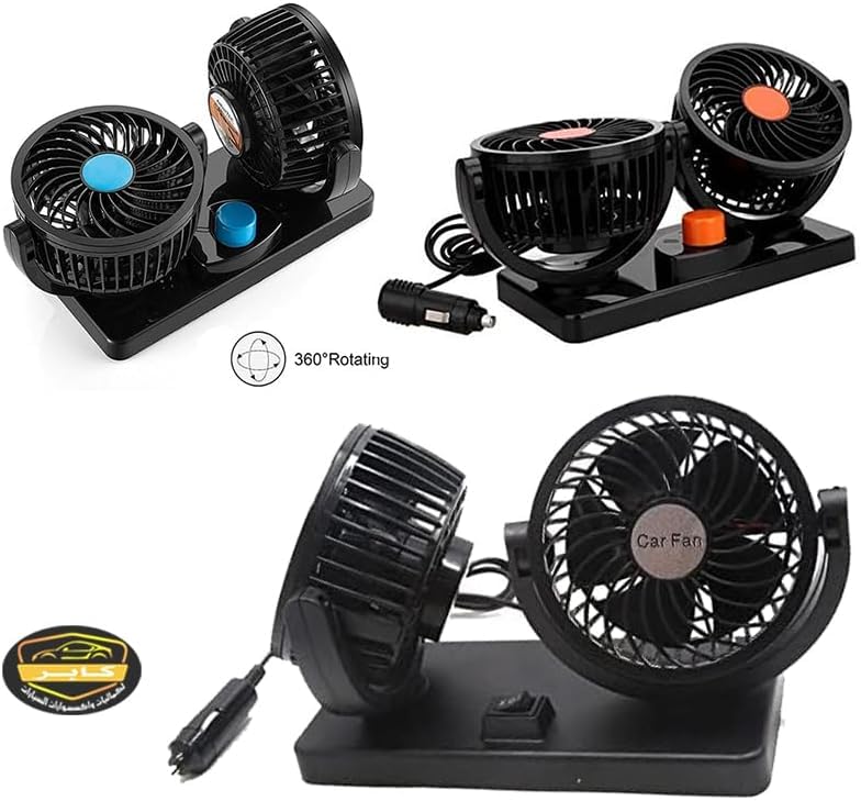 Generic - مروحة صغيرة للسيارة بتصميم امن للاطفال وراس مزدوج قابل للدوران بزاوية 360 درجة قوية وهادئة ومزودة بسرعتين وقوة تدفق هواء قابلة للتعديل بجهد 12 فولت (كود : 9431) - من رنا ستور