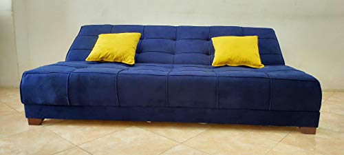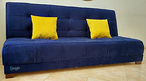 Rango - كنبة قابلة للتحويل لسرير بلون ازرق غامق مع وسادتين بلون اصفر من رانجو