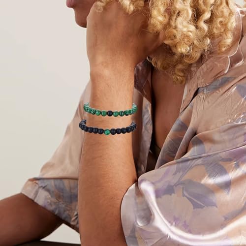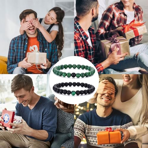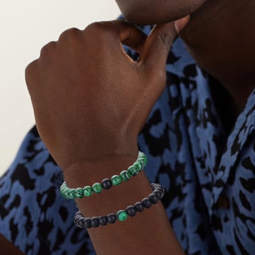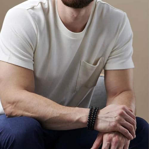 RANKEEF - سوار عين النمر للرجال من رانكيف مجموعة اساور خرز احجار طبيعية 8 ملم قابلة للتمدد للتعديل كريستال اسود والنساء