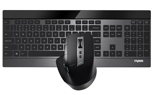 RAPOO - لوحة مفاتيح وماوس لاسلكية متعددة الوضعيات 9900M – بتقنية بلوتوث 3.0 و4.0 و2.4G مع مفتاح تبديل متعدد الوضعيات مفاتيح فائقة النحافة ودقة قابلة للتعديل نقطة لكل بوصة من رابو