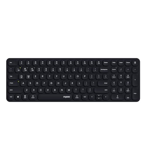 RAPOO - رابو كيبورد لاسلكية E9310M متعددة الاجهزة بلوتوث لاسلكية مع لوحة مفاتيح رقمية منخفضة الكتابة هادئة 99 مفتاح، تعمل بالبطارية، توصيل 4 اجهزة لويندوز/ماك/لينكس/كروم (اسود)