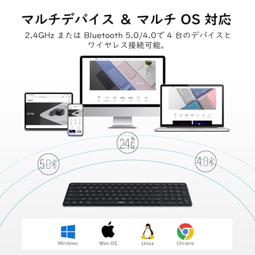- دعم لاسلكي متعدد الأجهزة: قم بإقران ما يصل إلى 4 أجهزة على أي نظام تشغيل تقريبًا (ويندوز وماك او اس ولينكس) عبر بلوتوث 5.0/4.0 ومستقبل USB مع خاصية التوصيل والتشغيل. استكشف طرقًا جديدة للكتابة على جهاز الكمبيوتر أو التابلت أو الهاتف الذكي أو الكمبيوتر الثاني