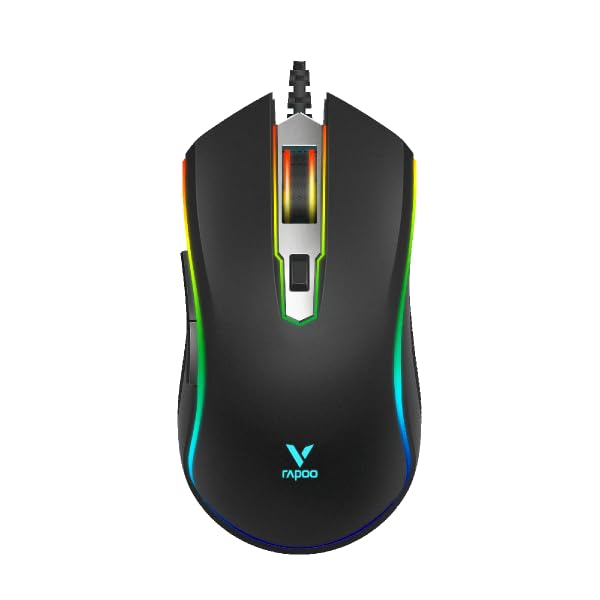 RAPOO - ماوس ألعاب ضوئي بإضاءة ار جي بي V25S من رابو