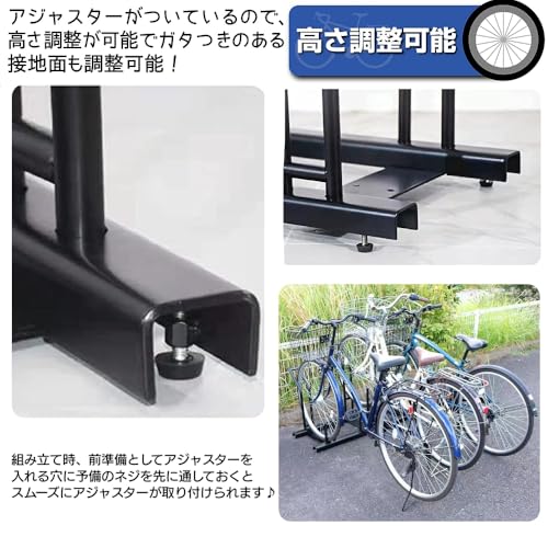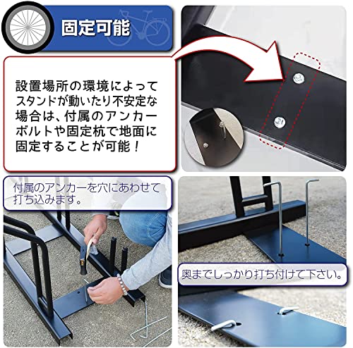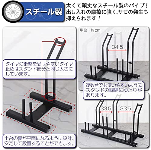 - سهولة ركن السيارة فقط عن طريق إدخال الإطار: يدعم حامل الدراجة بقوة أنابيب حديدية سميكة وقوية، والقاعدة ثقيلة بما يكفي لتحمل الرياح