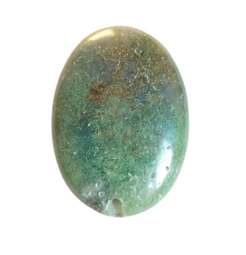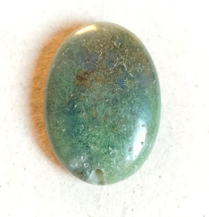 Generic - حجر كريم طبيعي نادر - عقيق طحلبي بيضاوي الشكل، مثقوب، شكل خاتم او قلادة، طول 3 سم، وجه مزدوج 2