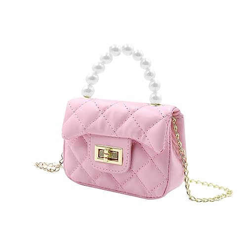 RARITYUS - شنطة كروس بتصميم أميرة لطيفة للبنات الصغيرات والأطفال من راريتيوس، شنطة كتف صغيرة مبطنة مع مقبض مزين باللؤلؤ، لون وردي، مقاس واحد