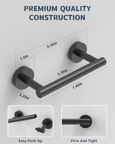 RARXTR - حامل ورق تواليت اسود غير لامع من الستانلس ستيل SUS304 من ار ار ار اكس تي ار، حامل مناديل تواليت مزدوج العمود يثبت على الحائط للحمام ار في