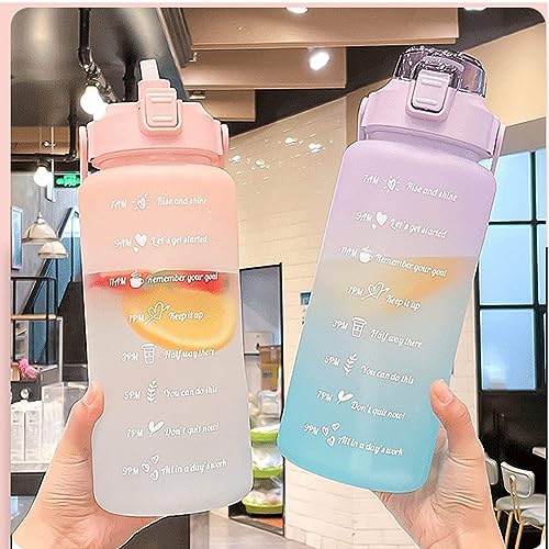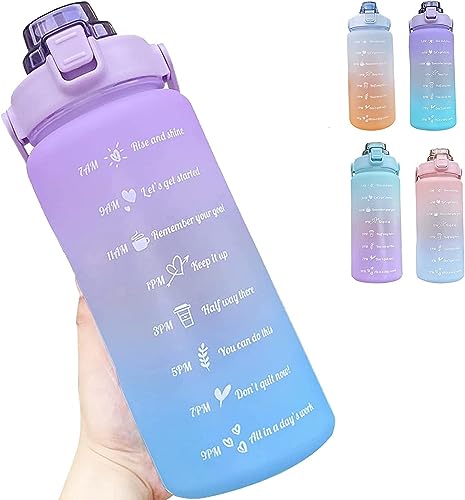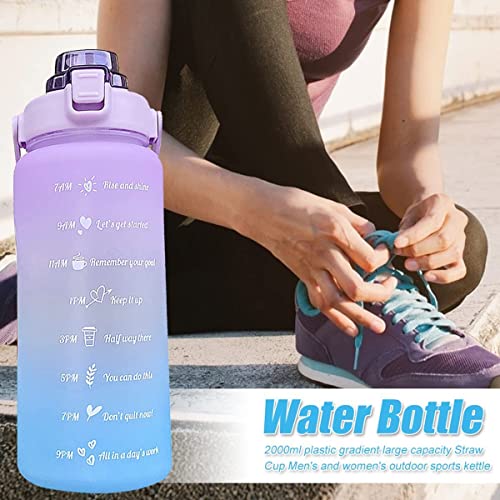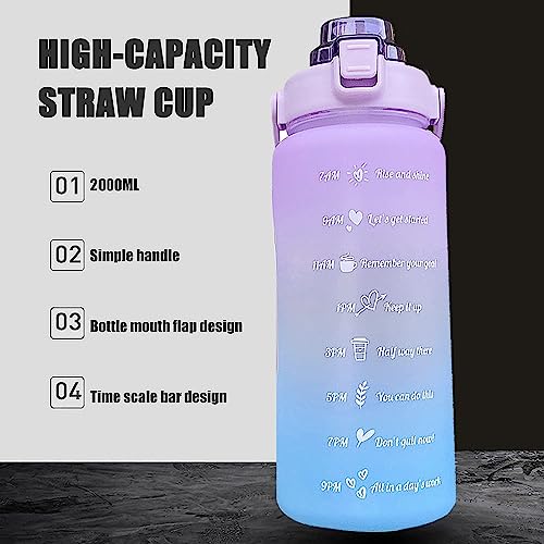 Spaceshoop - راتساو زجاجة مياه رياضية 2 لتر من جينيريك مع ماصة ومقبض مانعة للتسرب علامات زمنية تذكيرية تضمن شرب طوال اليوم مناسبة للياقة البدنية (ارجواني وازرق)