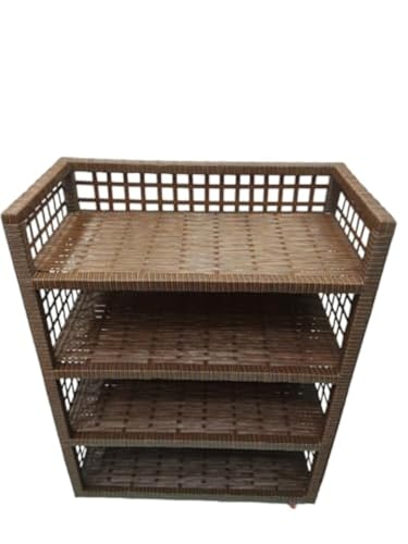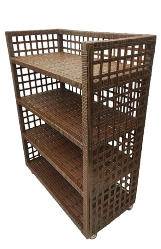 Generic - رفوف احذية من الراتان 4 ارفف مع عجلات لسهولة الحركة (بني)، معدن