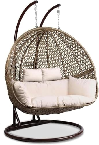 Generic - كرسي معلق متارجح من الراتان، كرسي بيض خارجي من الخوص مع حامل، وسائد مريحة، هزاز واسترخاء للفناء والشرفة والحديقة وغرفة المعيشة