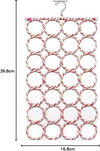 - تصميم متعدد الاستخدامات: تتميز بـ 28 حلقة بنمط نسيج راتان أنيق، مثالية لتنظيم وعرض الأوشحة والشالات وربطات العنق والأحزمة وغيرها من الملحقات