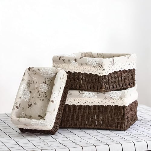 Generic - طقم سلال خوص رتان 3 مقاسات مختلفة مبطنين بقماش كتان لتخزين كل حاجتك في البيت بأناقة وجودة تدوم طويل وعملي في الاستخدام | من عام