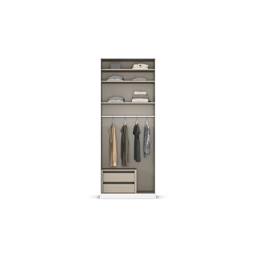 - بشكل افتراضي، تم تجهيز خزانة الملابس بقضيب تعليق ورفين. الجزء الداخلي القياسي لخزانة الملابس ذو ارتفاع قابل للتعديل.