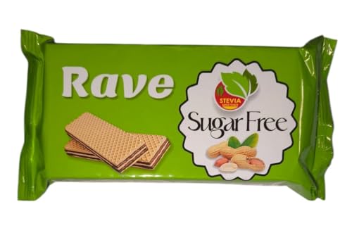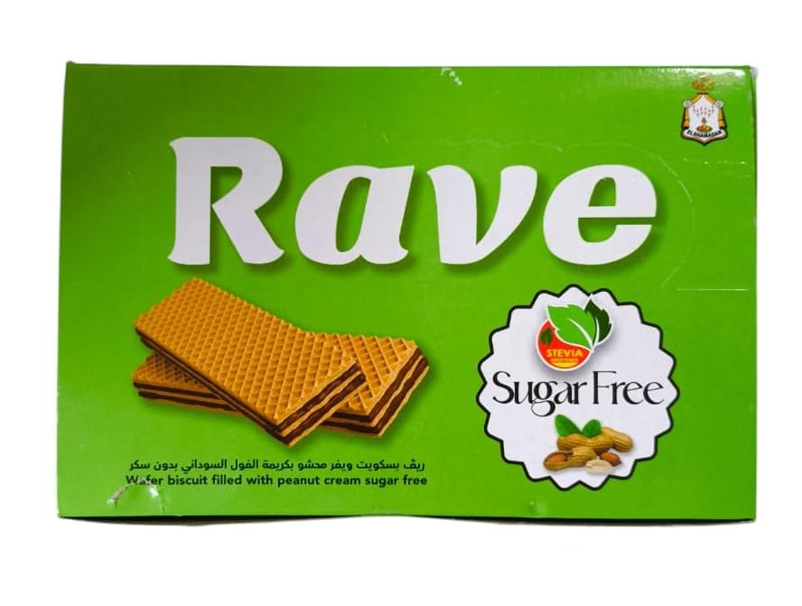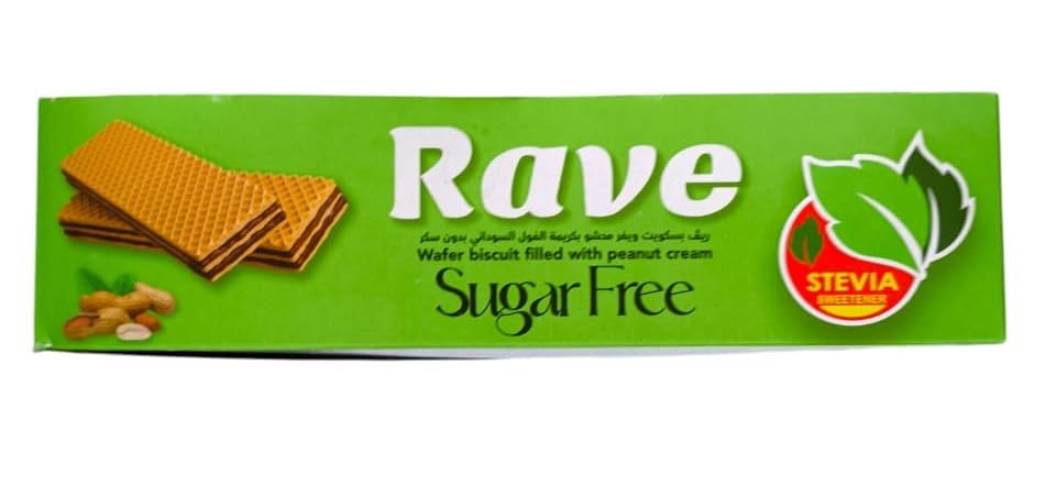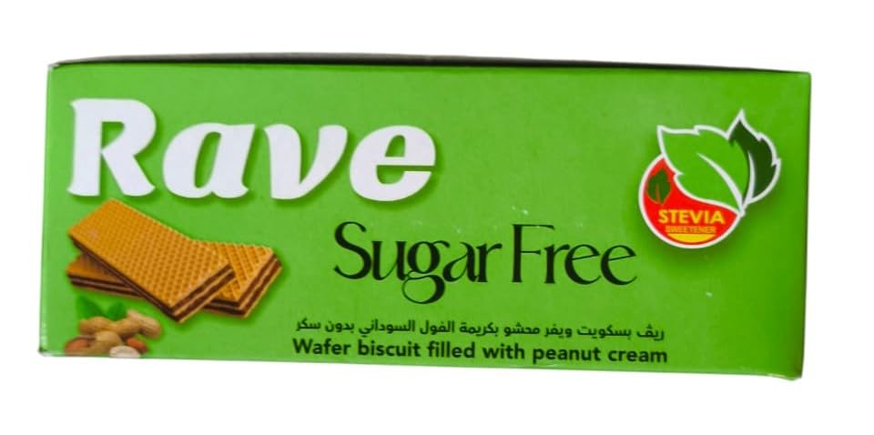 Rave - بسكويت ويفر محشو بكريمة الفول السوداني خالي من السكر من ريف، قطعة واحدة، 4 قطع بسكويت